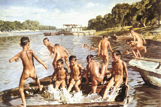 张洪祥 《大运河的子孙》 100×146cm 布面油画 1995年